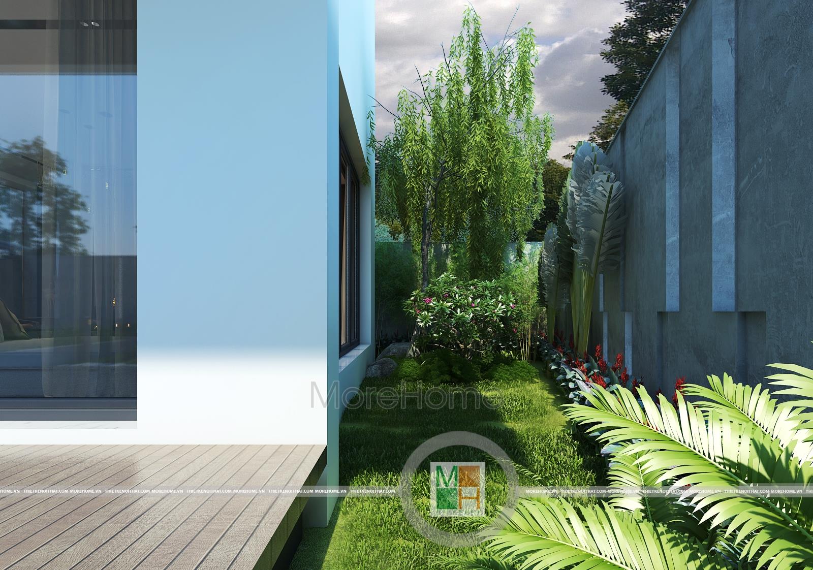 Căn biệt thự nhà anh Phúc tại Nghệ An được thiết kế như một căn biệt thự phố 3 tầng hiện đại không gian sân vườn khá rộng có chỗ để ô tô và bố trí các tiểu cảnh trang trí xung quanh. Căn biệt thự phố 2 mặt tiền nên được thiết kế 2 cổng tại 2 mặt tiền, một cổng cho xe ô tô vào gara và một mặt khác là cổng ra vào chính