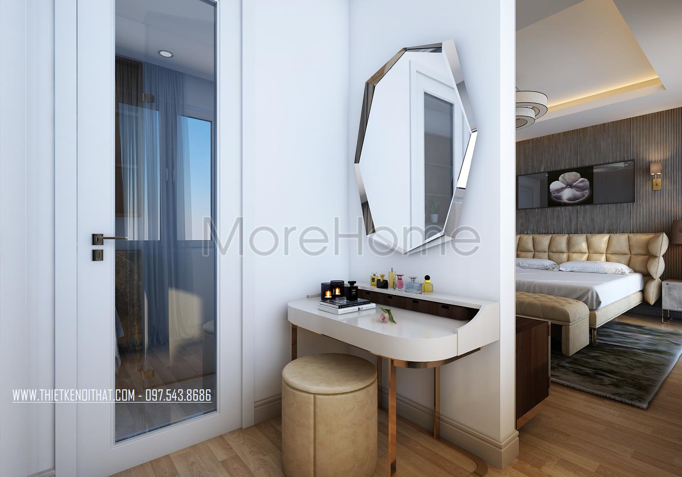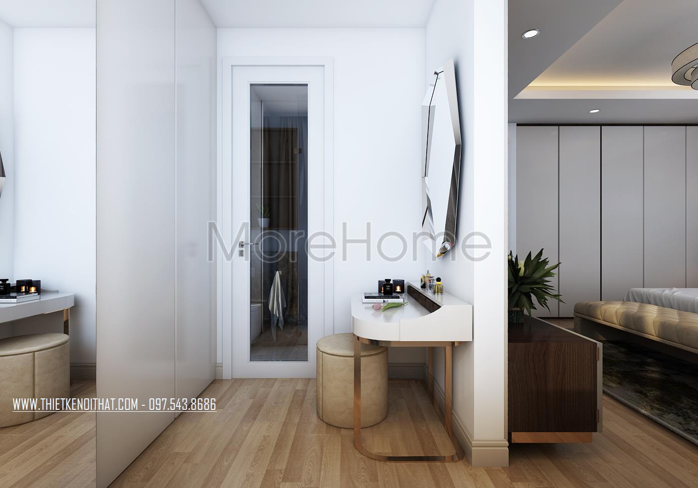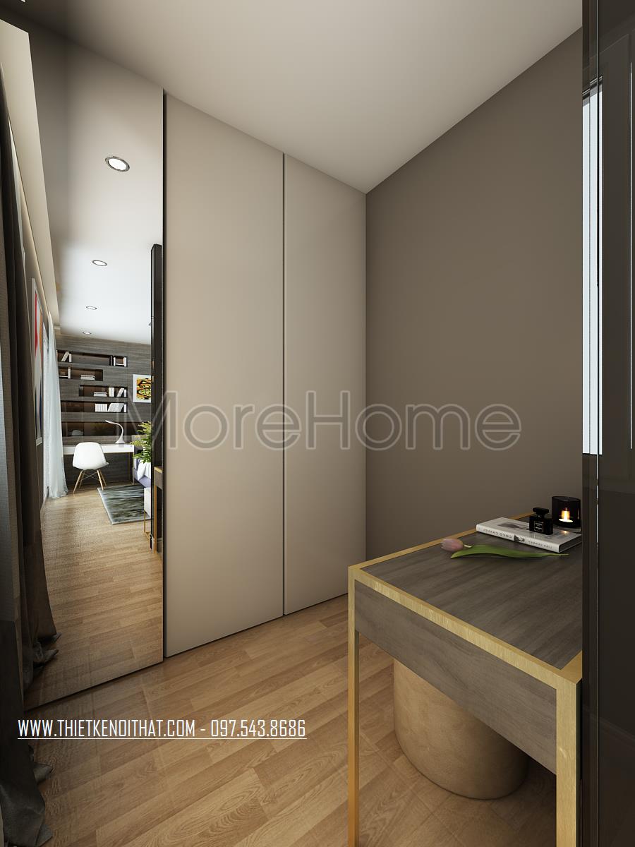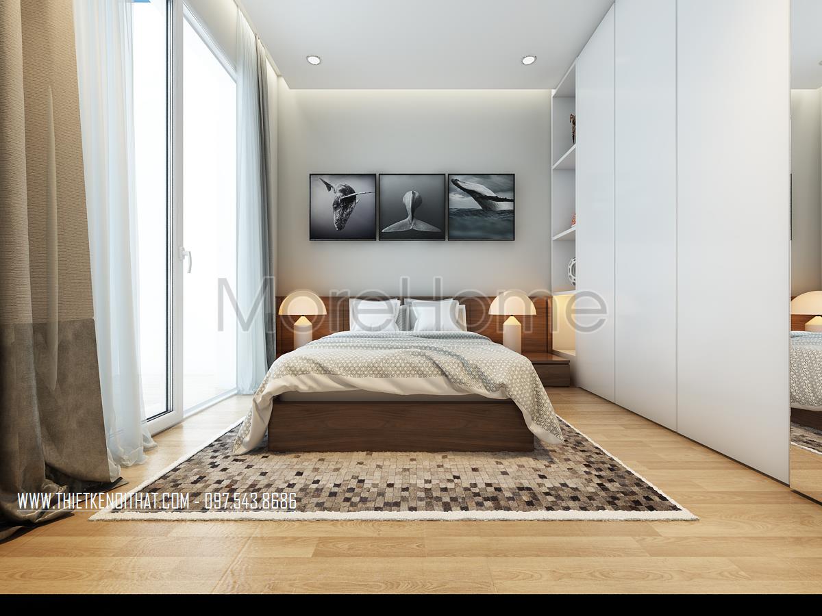 Cuối cùng là thiết kế nội thất phòng ngủ hiện đại. Tone màu nền sáng được sử dụng làm nổi bật lên các đường nét và vật dụng trang trí tạo ấn tượng cho căn phòng. Màu rêu trầm tối được sử dụng khéo léo giúp cân bằng màu sắc và tạo sự hài hòa cho không gian sống. Bên cạnh đó, hiệu ứng ánh sáng và màu sắc còn giúp đem lại cảm giác ấm áp và thân thiện cho không gian sống.