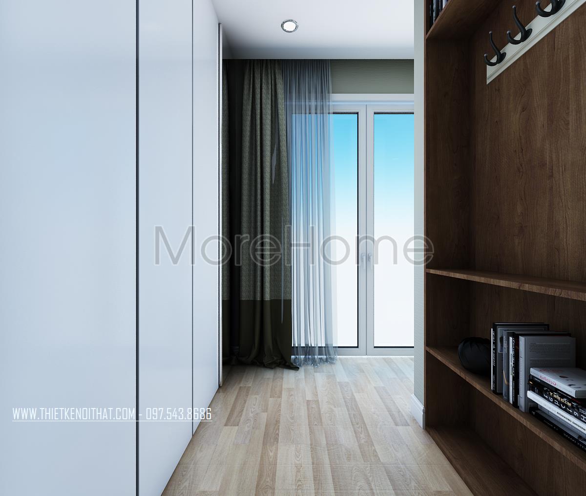Thiết kế phòng ngủ master được chia làm hai khu rõ ràng tạo cảm giác riêng tư cho gia chủ. Vách ngăn dựng đứng được làm bằng thanh gỗ tự nhiên tone màu dịu nhẹ vừa đảm bảo tính thẩm mỹ cho không gian vừa tránh được sự bí bách và khó chịu từ các bức tường thô hay vách bê tông cứng.