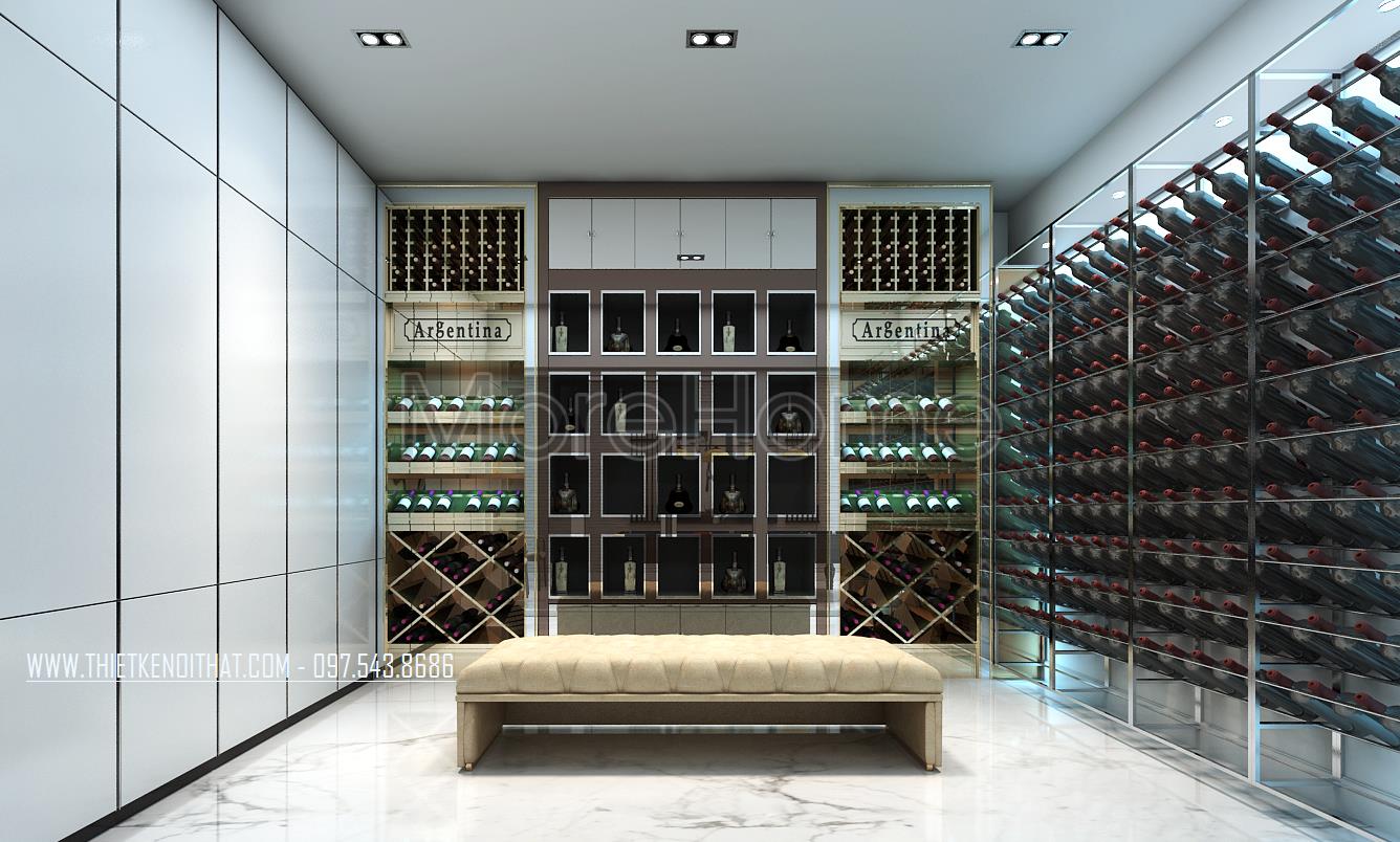 Ở thiết kế nội thất biệt thự Vinhome này, chúng ta dễ dàng bị thu hút bởi thiết kế kệ tủ dưới gầm cầu thang. Thông thường, đây là không gian khá tối, ẩm, là nơi mà gia chủ luôn muốn cất giấu đi, tuy nhiên, ở đây, không gian này lại thu hút sự chú ý lớn nhờ vào thiết kế kệ tủ đa năng hiện đại. Thiết kế kệ gỗ nhiều tầng với sự sắp xếp hợp lý giúp mang đến sự tiện nghi cho gia chủ mà lại làm tăng tính thẩm mỹ cho không gian.