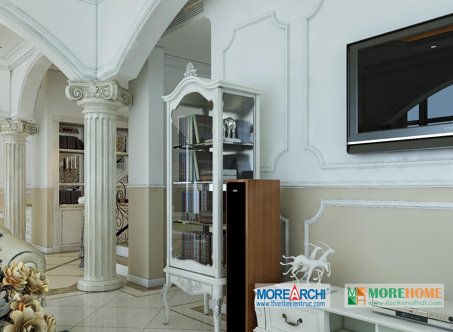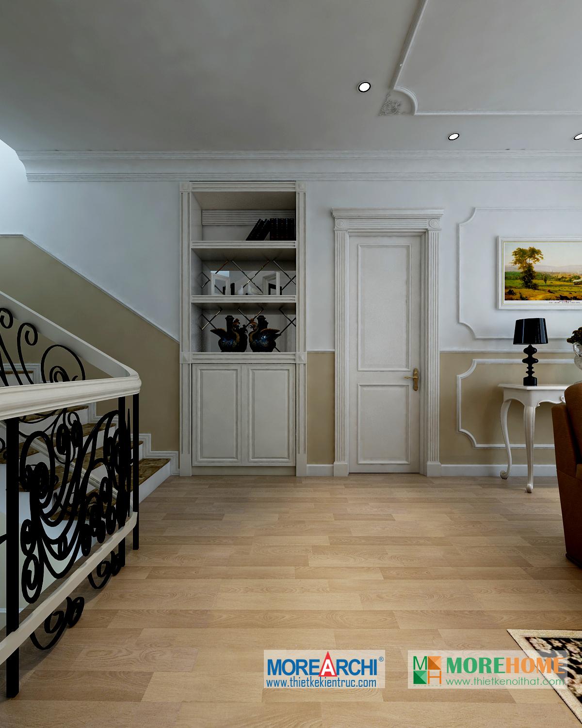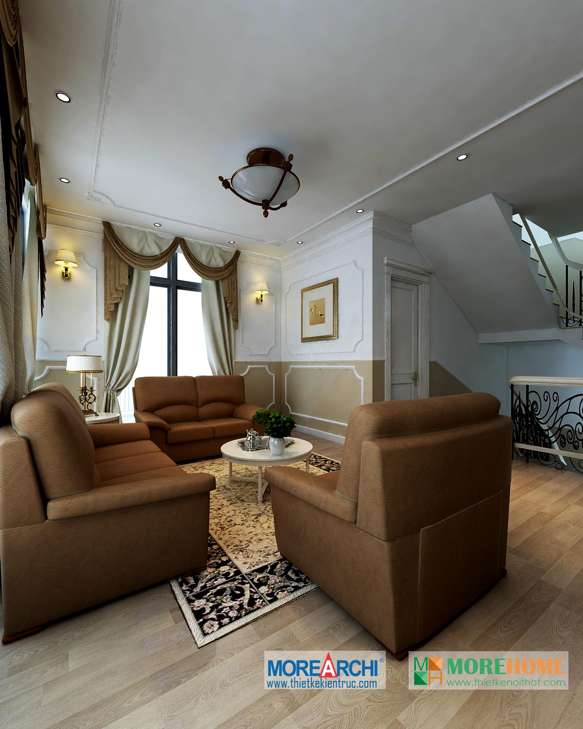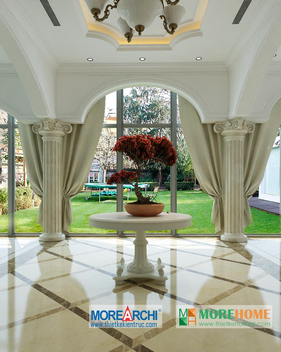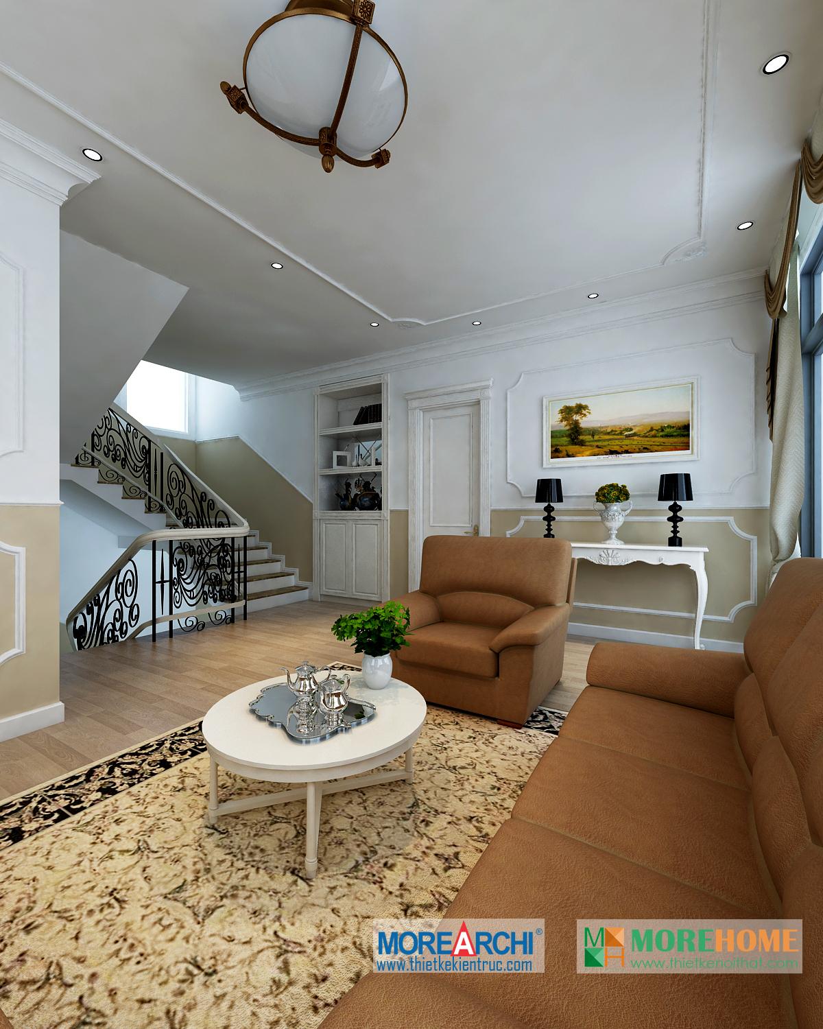 Căn nhà có diện tích rộng rãi, không gian mở và thoáng, diện tích sân vườn và hướng sáng khá rộng chính là những lợi thế đặc biệt cho việc định hình phong cách và cái “Tôi” của gia chủ. Thiết kế nội thất mang phong cách tân cổ điển, có hơi hướng châu Âu mang đến cảm giác sang trọng và quý phái. Đặc điểm nổi trội của kiến trúc tân cổ điển chính là sự kết hợp của đường nét và màu sắc.
