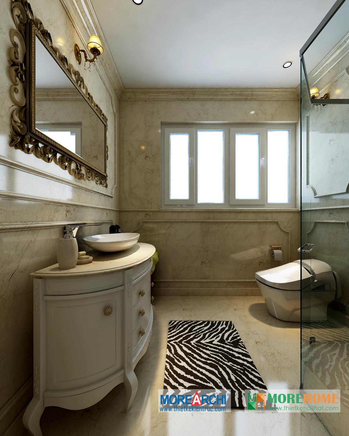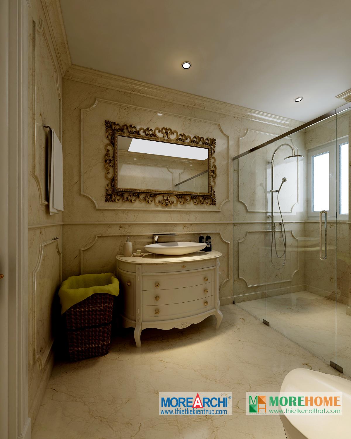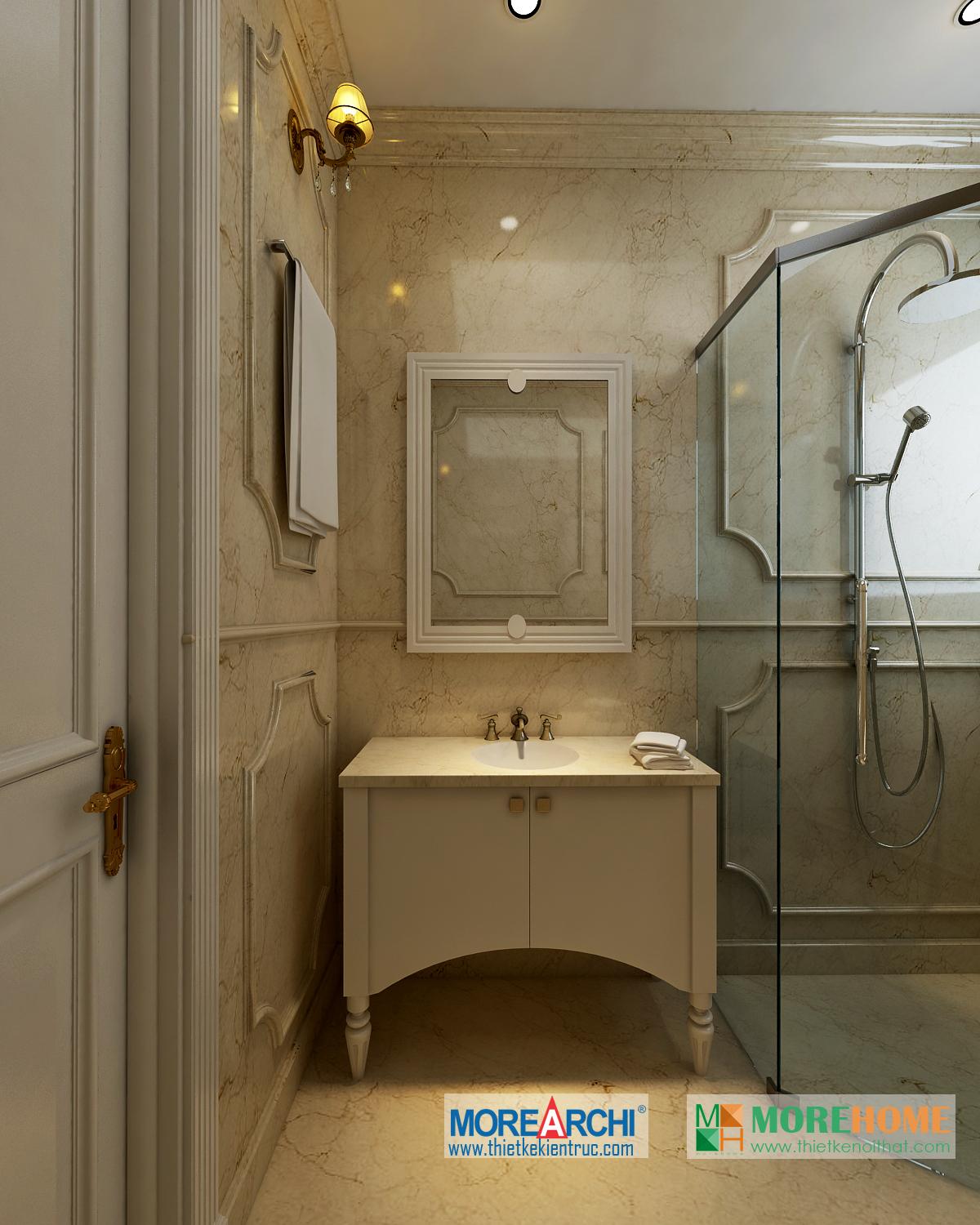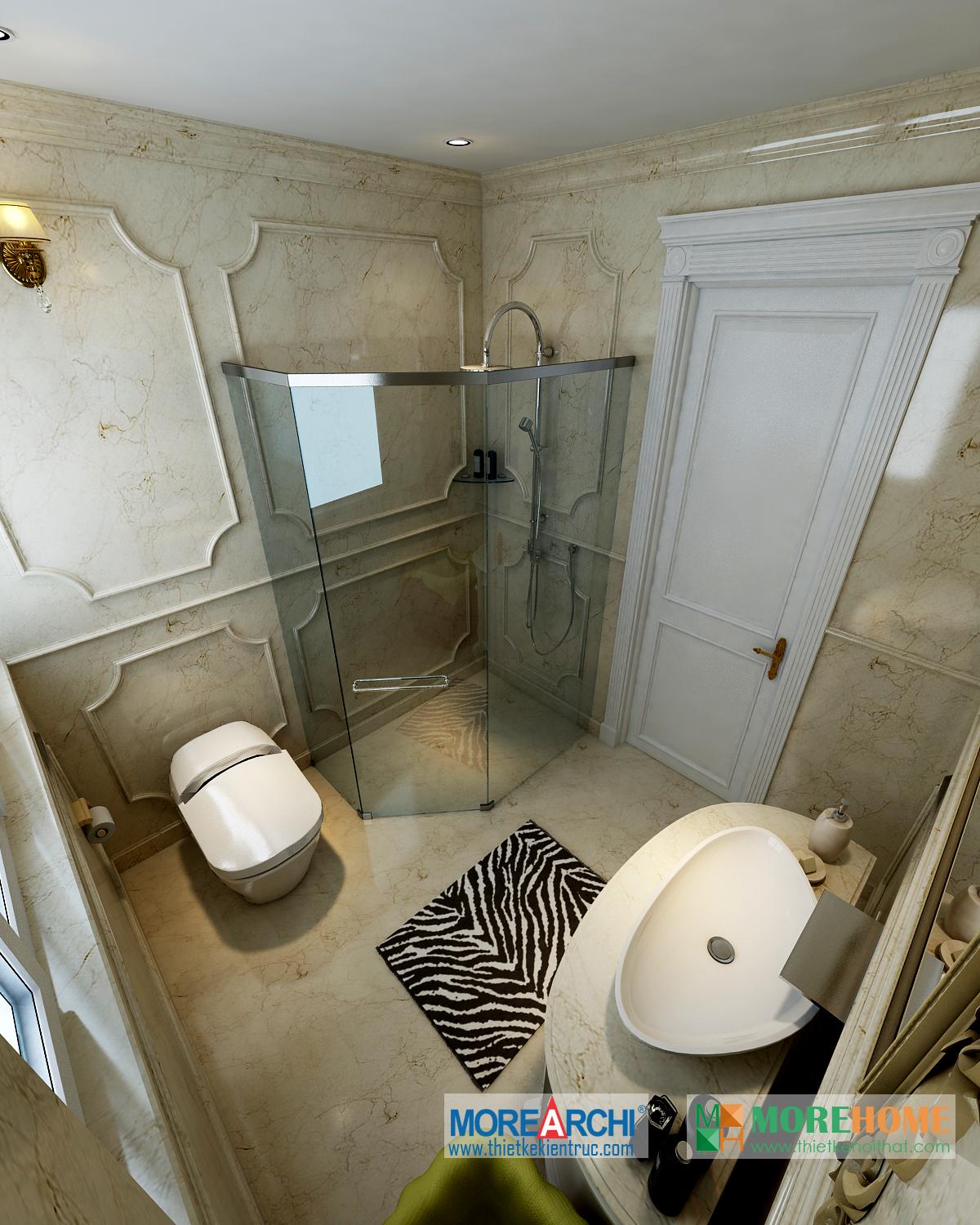 Thiết kế phòng tắm sử dụng các vật liệu nhẹ như kính giúp tăng diện tích sử dụng và tạo độ thoáng cho căn phòng. Không gian phòng được mở rộng và khá nổi bật, kết hợp hài hòa với ánh sáng và màu sắc mang đến cảm giác thoải mái và dễ chịu cho gia chủ.