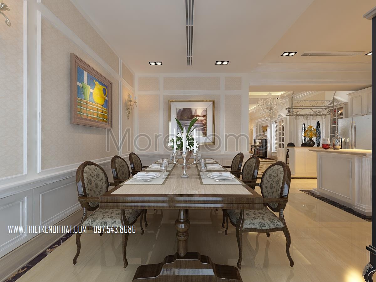 Thiết kế nội thất biệt thự Vinhomes Riverside thanh lịch tao nhã trong thiết kế nội thất phòng ăn