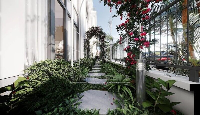 Bạn sở hữu căn biệt thự phố, bạn đang muốn tham khảo ý tưởng bố trí tiểu cảnh bên hông nhà, Morehome xin giới thiệu mẫu bố trí biệt thự với khuôn viên nhỏ để bạn ngồi đọc sách, tận hưởng cảm giác thanh mát từ làn nước trong lành cùng sức sống tuyệt vời từ những bông sen đang vươn mình, chạm vào những phiến lá xanh mềm mại.